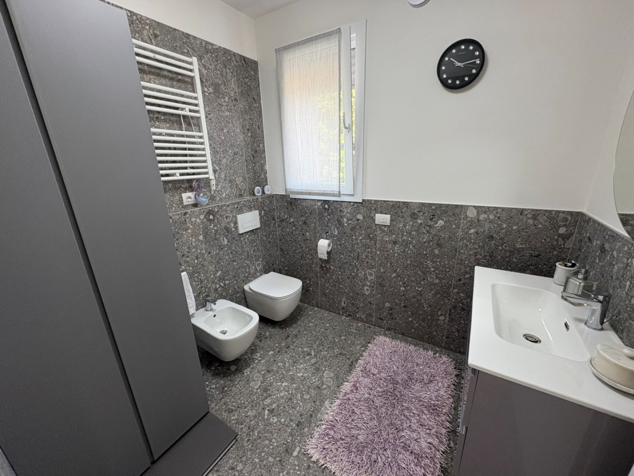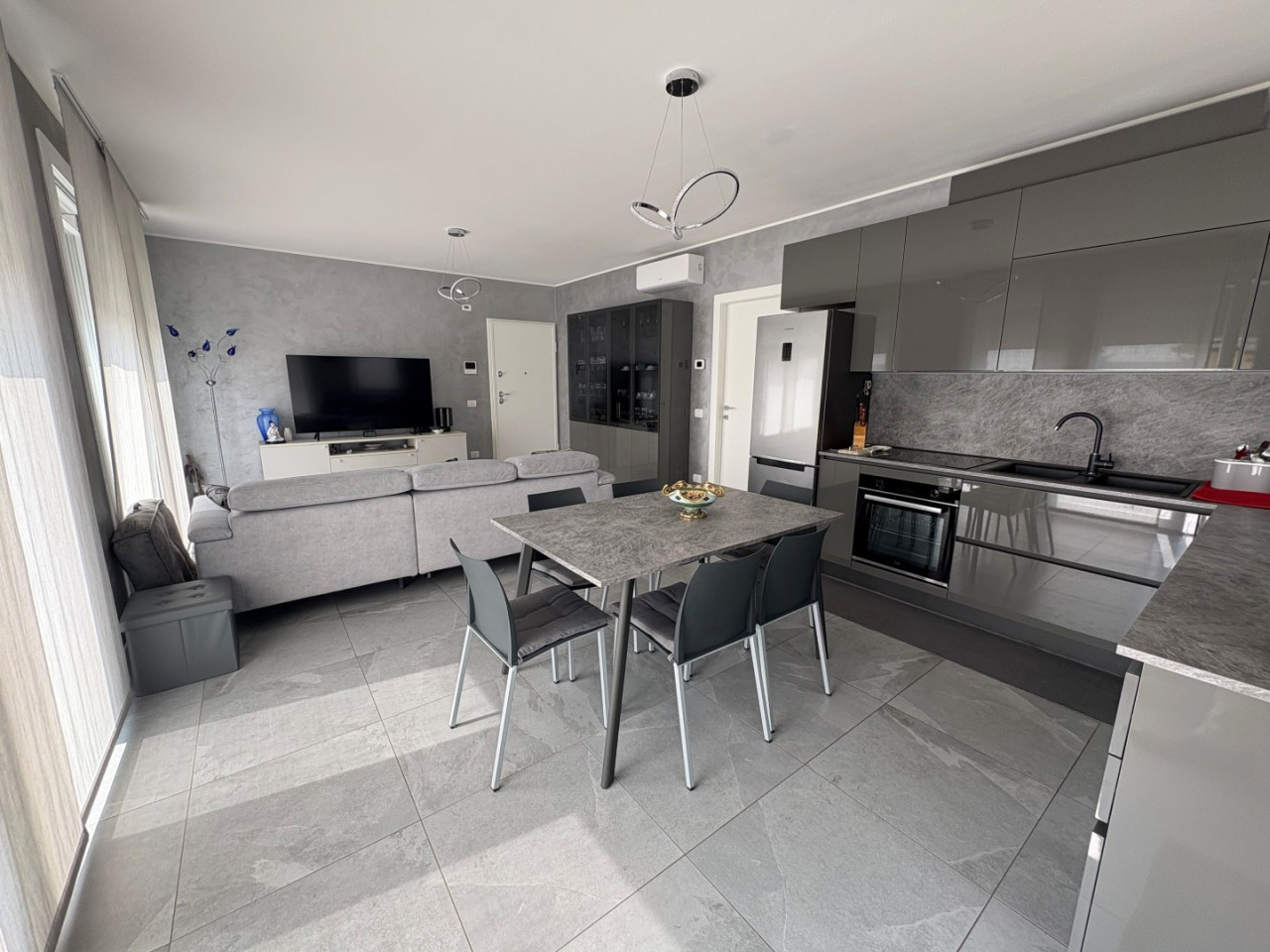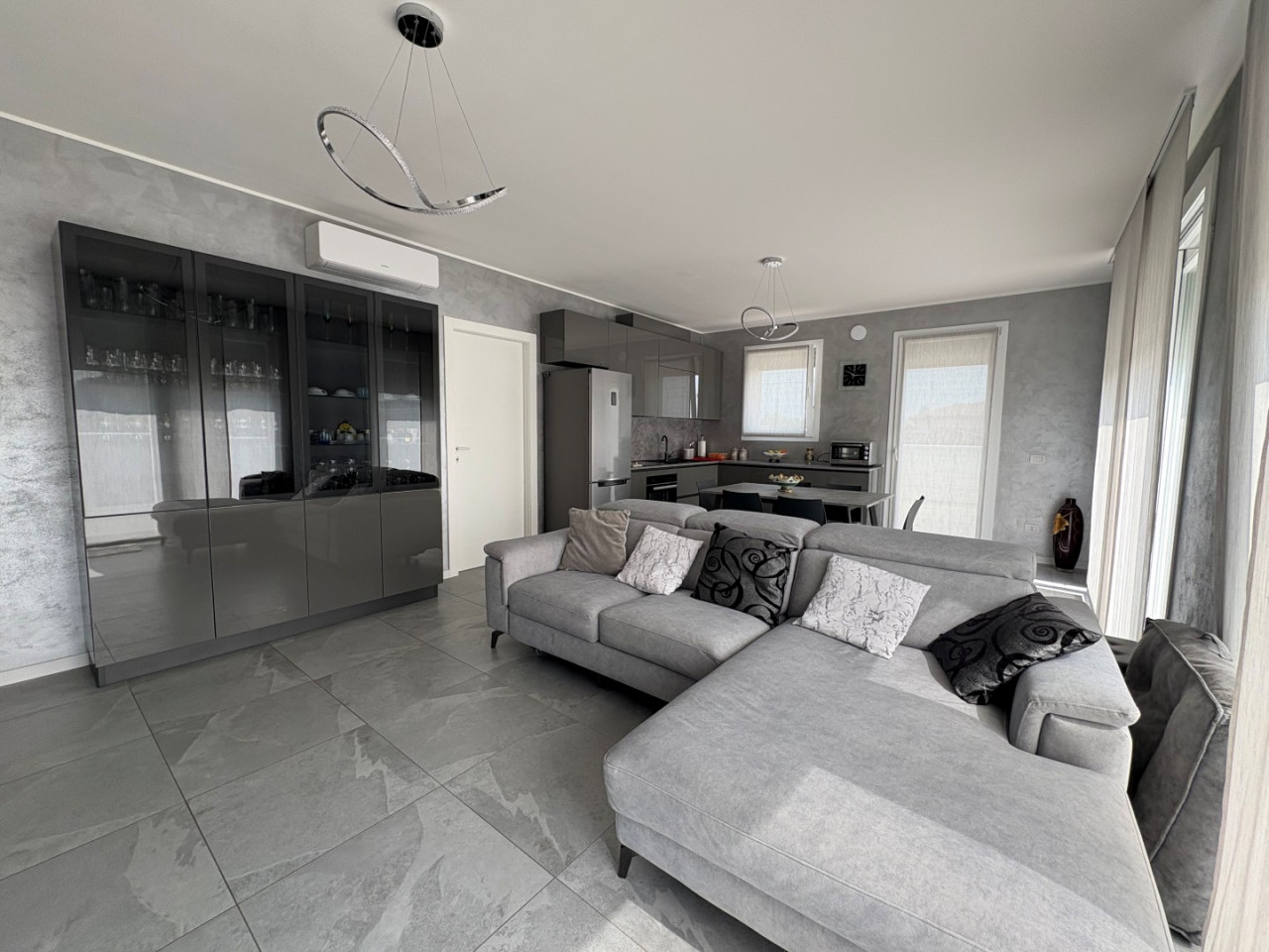 Le finiture sono curate nei minimi dettagli; il riscaldamento a pavimento garantisce un comfort ottimale durante tutto l'anno. Inoltre, la caldaia in pompa di calore assicura efficienza energetica insieme all'impianto fotovoltaico installato sul tetto dell'edificio.