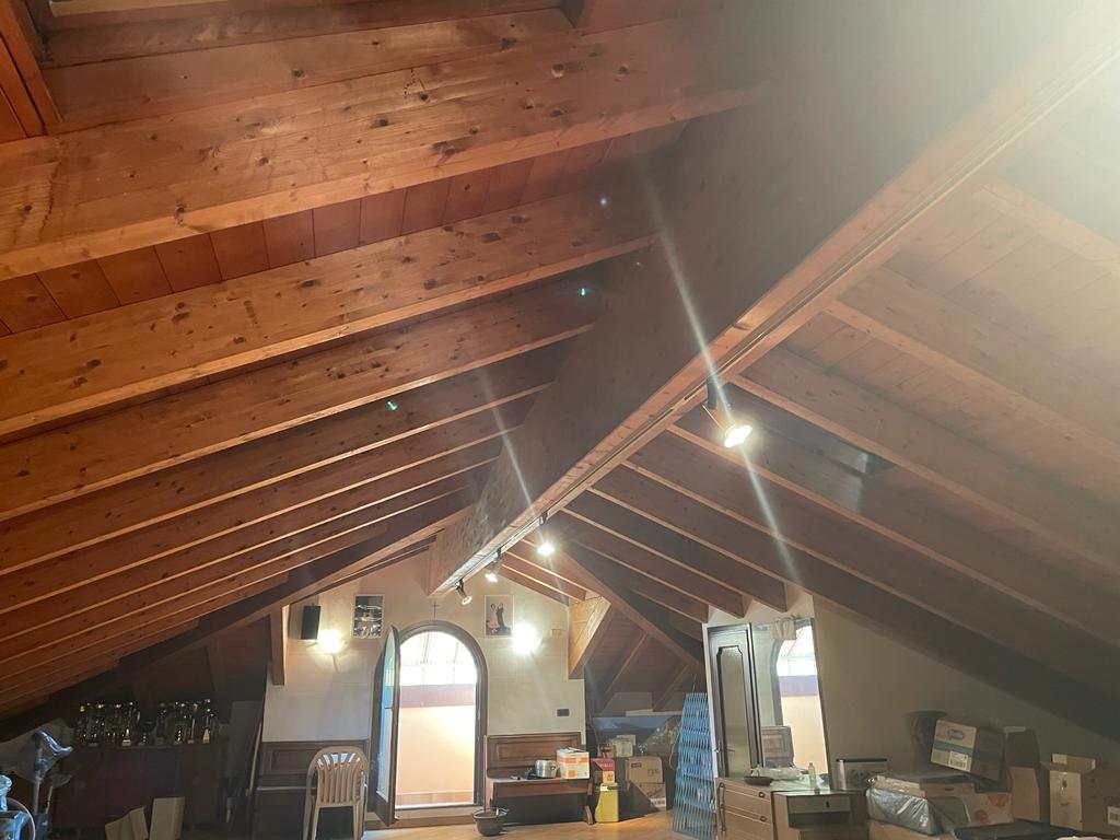 L'ampio soggiorno con angolo cottura di circa 42 mq è caratterizzato da eleganti pavimenti in marmo e travi a vista che conferiscono calore all'ambiente. La zona giorno offre la possibilità di creare una cucina separata per chi desidera avere spazi distinti. Completano il piano due camere matrimoniali, una camera singola, lavanderia/ripostiglio e ben due bagni finestrati.